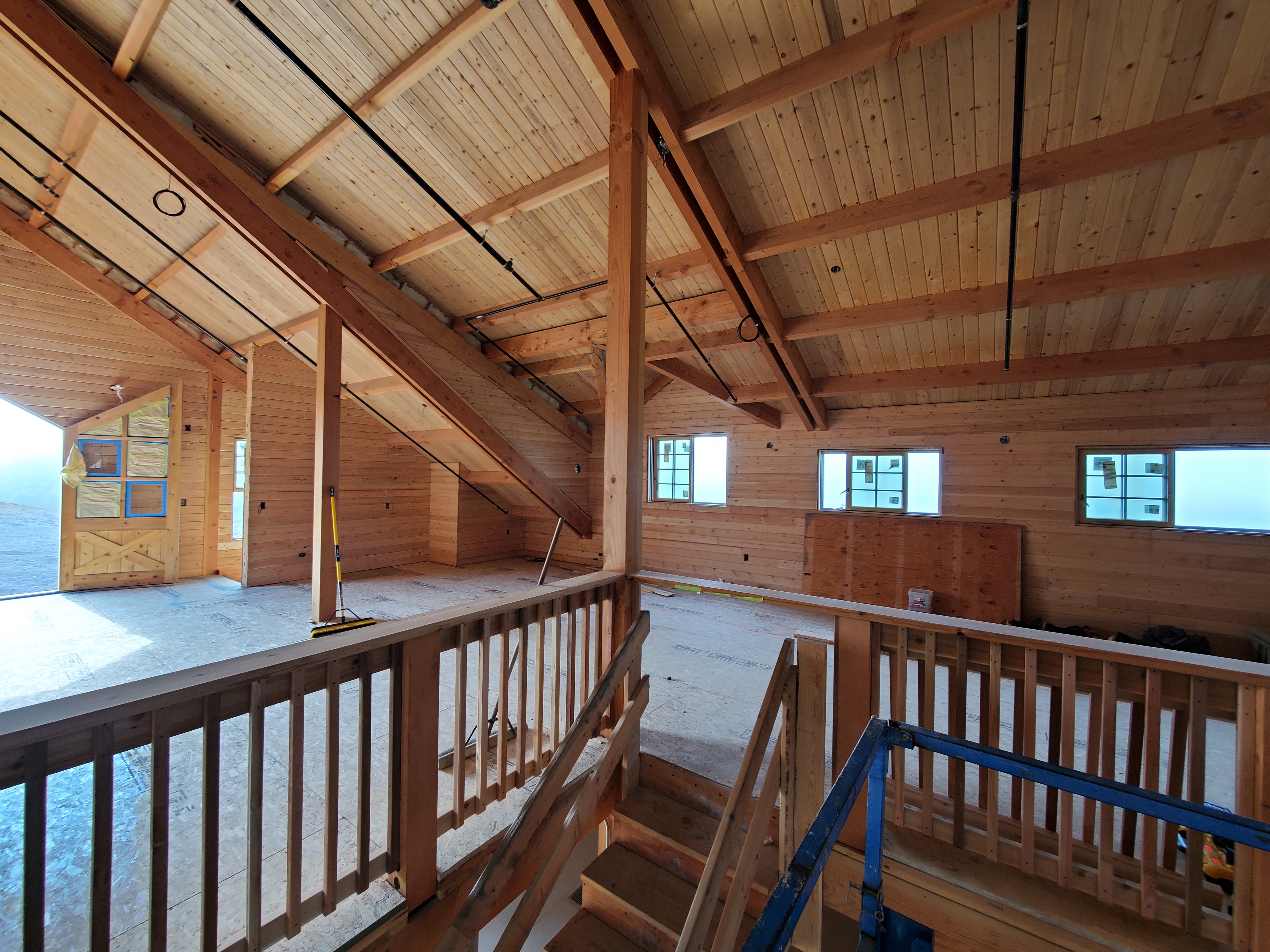 Installed cedar board and batten siding on the exterior and 2×6 tongue and groove on all interior walls.